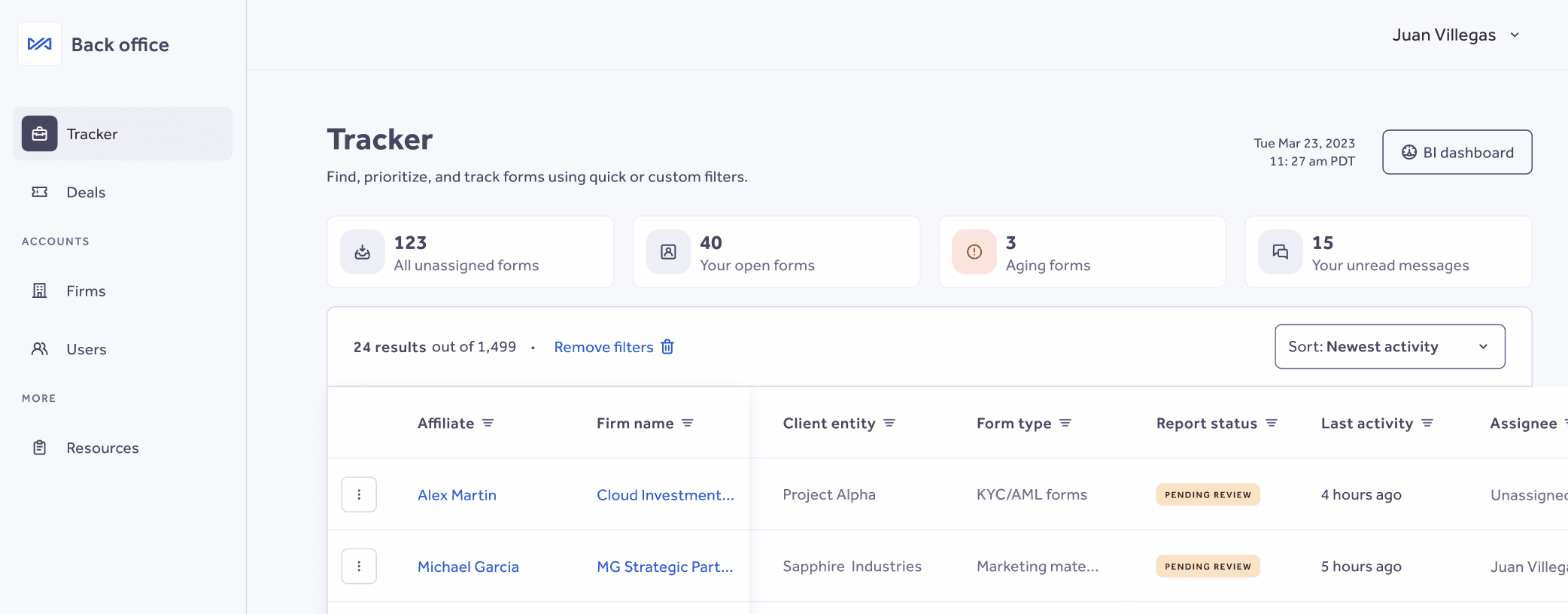 Atlas'd bring all compliance, firm, user and deal information into a single source, enabling: